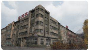 For that to take place, a new military airport was constructed on the flatlands, west of lake Slyepats (Cyrillic: Слѥpac, romanized: Sljepac) in 1978; along with a prefabricated city based on the successful model of Mitrovice to house the pilots, officers, and supporting personnel. The city is complete with a hotel for visiting commanders, a luxury shopping center, school, hospital, fire, and police stations. A highway runs through the city, allowing for easy access to the airbase, ship ports, and Bukvats island. The city was named Krasnoznamensk (Cyrillic: Краснознаменск, romanized: Krasnoznamensk) in honor of the Main Test and Space Systems Control Centre having just been awarded the Order of the Red Banner of Labor (Russian: Орден Трудового Красного Знамени СССР) in the year prior.